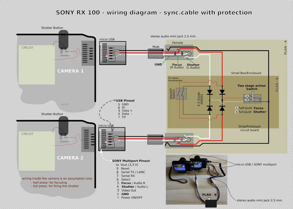 Dengan melihat diagram di bawah, lihat letak pin Sony Multiport, untuk kamera stereo hanya memerlukan pin 5, pin 4 dan GND kemudian dihubungkan secara paralel.