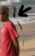 Warna grey yang dipilih untuk masing-masing objek tentunya disesuaikan dengan prediksi dimana orang tersebut berdiri dipantai (lihat tanda panah).