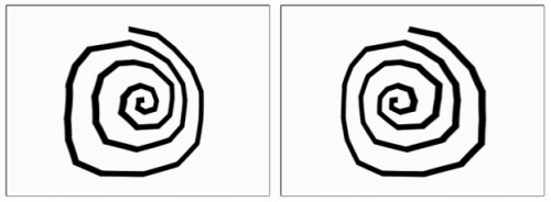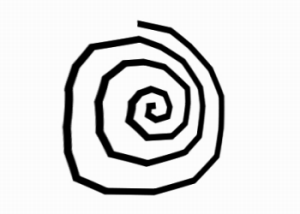 Untuk mengenal hubungan peta kedalaman dan pergeseran pixel yg akan dilakukan oleh displace tool. Kita mulai dengan membuat gambar stereo dari gambar 2 dimensi yang sederhana. Cobalah buat gambar spiral seperti dibawah. Nantinya, setelah kita menggeser pixel menjadi gambar stereo dimana tengah-tengah spiral mencuat (pop-up) dari jendela stereo atau bidang gambar. Gambar spiral menjadi suatu kerucut yang dilihat dari atas.