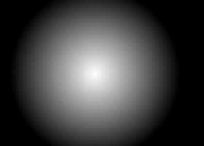 Tool ini ada lima cara yang berbeda. Untuk konversi ini, kita perlu aktifkan : Radial Gradient”. Pilih pilihan dengan klik pada ikon kecil (kedua dari kiri). Sekali lagi dalam alat kotak, pilih putih untuk warna foreground dan hitam untuk background warna. Karena peta kedalaman hanya berfungsi dengan nuansa yang berbeda abu-abu, kita tidak memerlukan warna lain kecuali putih, hitam dan abu-abu. Sekarang klik pada bagian tengah gambar dan tarik garis ke arah sudut gambar persegi. Gambar Hasil akan terlihat seperti ini: