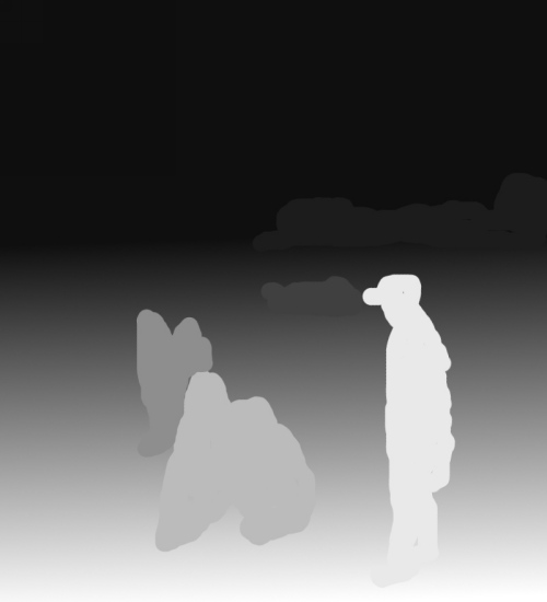 Jika anda membuat foto serupa tapi ukuran lebih besar, maka map tadi kurang detil. Sebagai contoh orang yg berdiri di depan dengan posisi menyamping, maka map-nya tidak bisa flat atau hanya satu warna grey, melainkan bahu kiri dan badan bagian kiri harus lebih terang dari pada bagian kanannya, karena bagian kanan orang tersebut harus lebih masuk kedalam dari pada bagian kirinya, bukan.